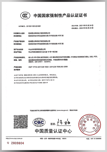 La société a établi un laboratoire professionnel, équipé d'une sphère d'intégration, d'un détecteur ROHS, d'un boîtier de test de choc chaud et froid, d'une armoire de contrôle de vieillissement de choc haute et basse tension.Chambre d'essai à température et humidité constantes, testeur de vieillissement accéléré aux ultraviolets, testeur de traction, testeur de pression à bille, testeur phosphorescent, testeur de flamme à aiguille, boîte de bain sec électrothermique à température constante, testeur de brouillard salin et autres équipements de test professionnels pour s'assurer que les produits répondent aux exigences de diverses normes ;